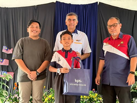 As part of this initiative, representatives from KPS Berhad and CBB visited SK Senai, Johor to distribute school uniforms to selected students under the KPS School Aid 2025 programme.